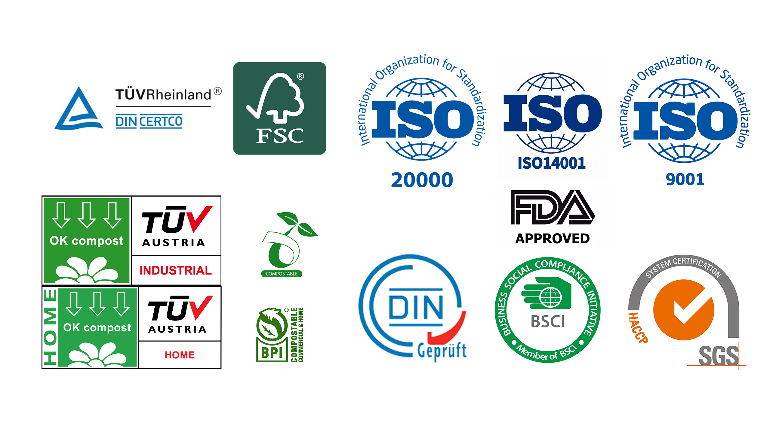 Besides, many certifications are approved, such as ISO9001/14001/20000, OK Compost, BPI, FDA, etc. We estabilshed our strict QC system and after sales system.